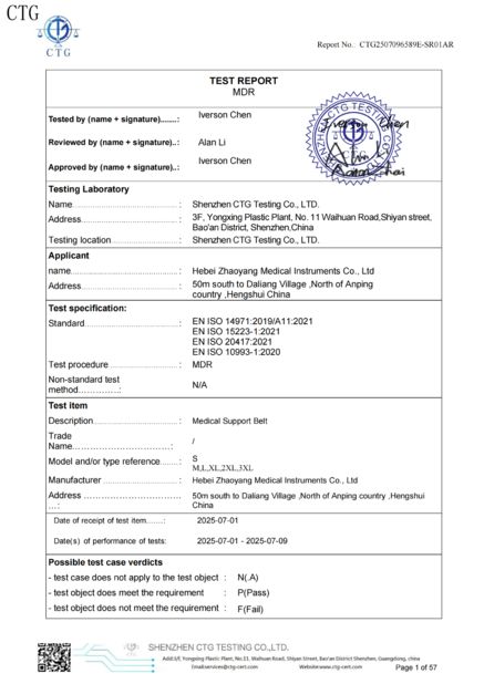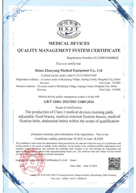 • चीन Hebei Zhaoyang Medical Instrument Co., Ltd. प्रमाणपत्र